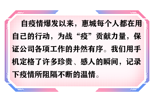 釘釘消息、防控海報,桌牌展板、標語口號.....我們隨時隨地提醒您不要忘了加強疫情的防控,將關愛與溫暖,傳遞到每一位惠城人心里。
