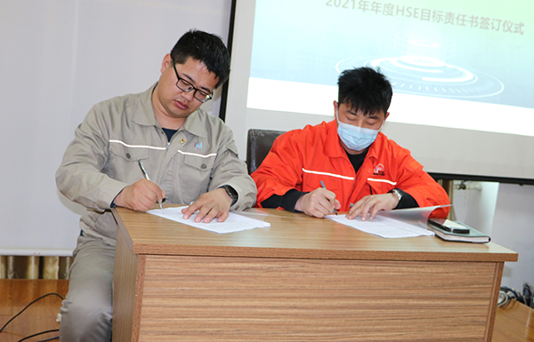 隨后公司總經(jīng)理與生產(chǎn)管理部、HSE管理部,生產(chǎn)管理部與設(shè)備管理部,設(shè)備管理部與維修維保方簽署了年度HSE責(zé)任書。