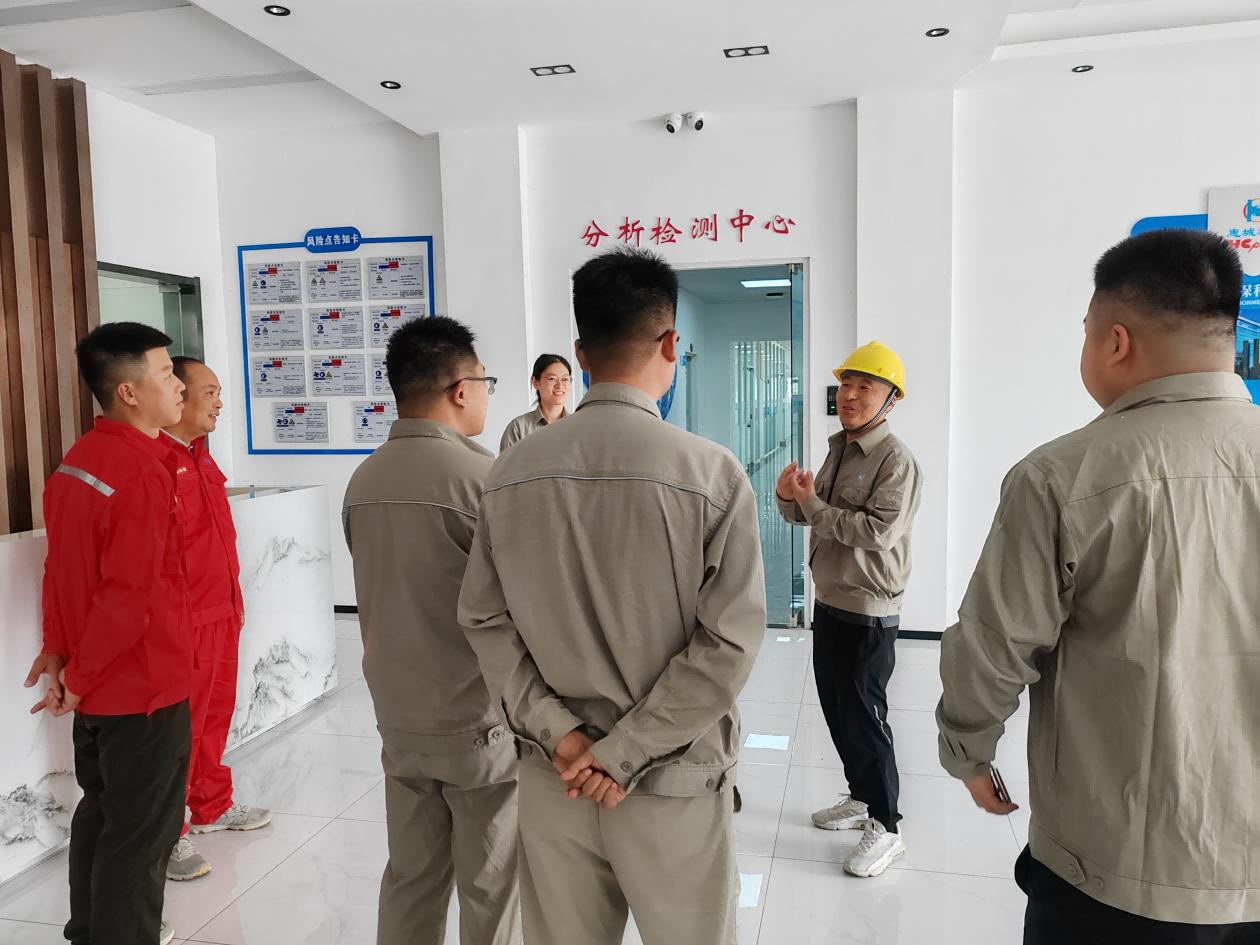 隨后,惠城環保生產管理部部長高舉潤、車間主管趙海洋、設備管理部部長劉德寶、HSE管理部主管宋春玲,與6位同事舉行了座談。圍繞生產管理、產品工藝、設備管理、安全管理、員工管理等關鍵主題,大家暢所欲言,分享經驗,提出問題,共同探討解決方案?;莩黔h保的管理人員傾囊相授,子公司的同事們虛心求教,思想的火花在交流中不斷迸發,共同探尋著優化工作流程、提升生產效率、保障生產安全、精益生產管理、凝聚團隊力量的有效路徑。