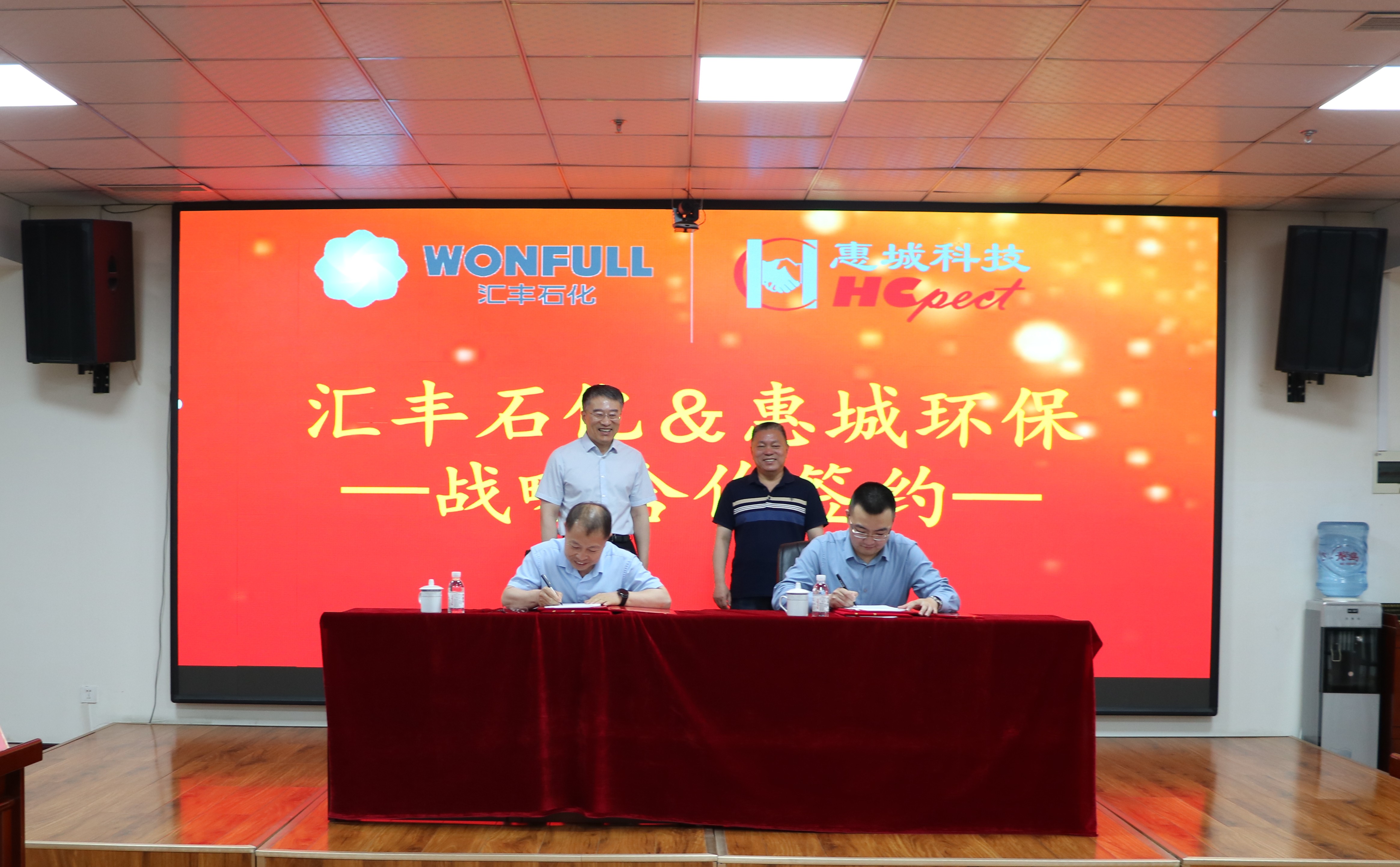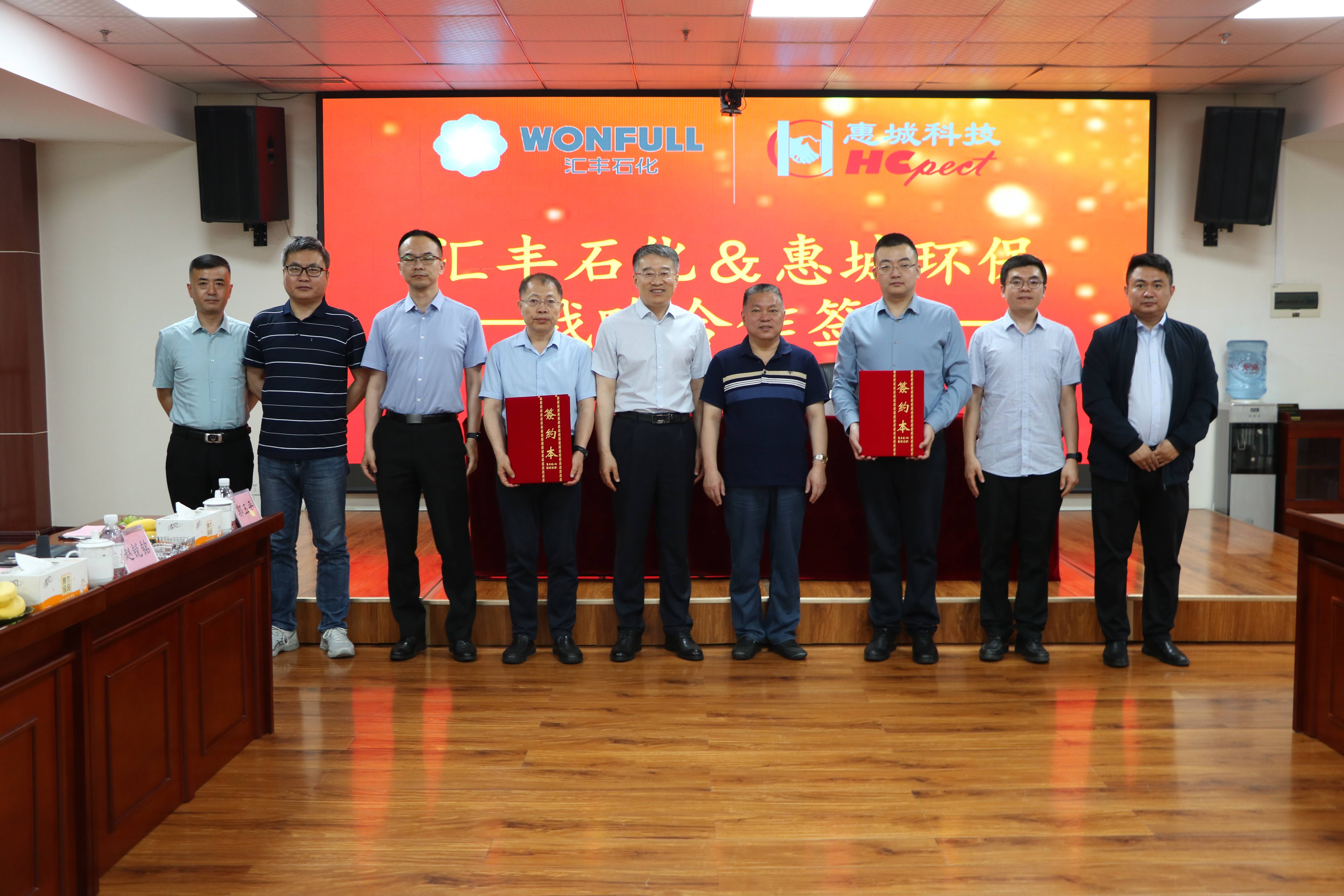 為進一步推動綠色循環經濟高質量可持續發展,加快先進環保技術成果轉化落地,5月18日,青島惠城環保科技集團股份有限公司(以下簡稱“惠城環保”)與山東匯豐石化集團有限公司(以下簡稱“匯豐石化”)戰略合作簽約儀式在惠城環保研發大樓418會議室隆重舉行。匯豐石化總裁李波、總工程師王瑞旭,惠城環保創始人張新功、總經理林瀚等出席簽約儀式。